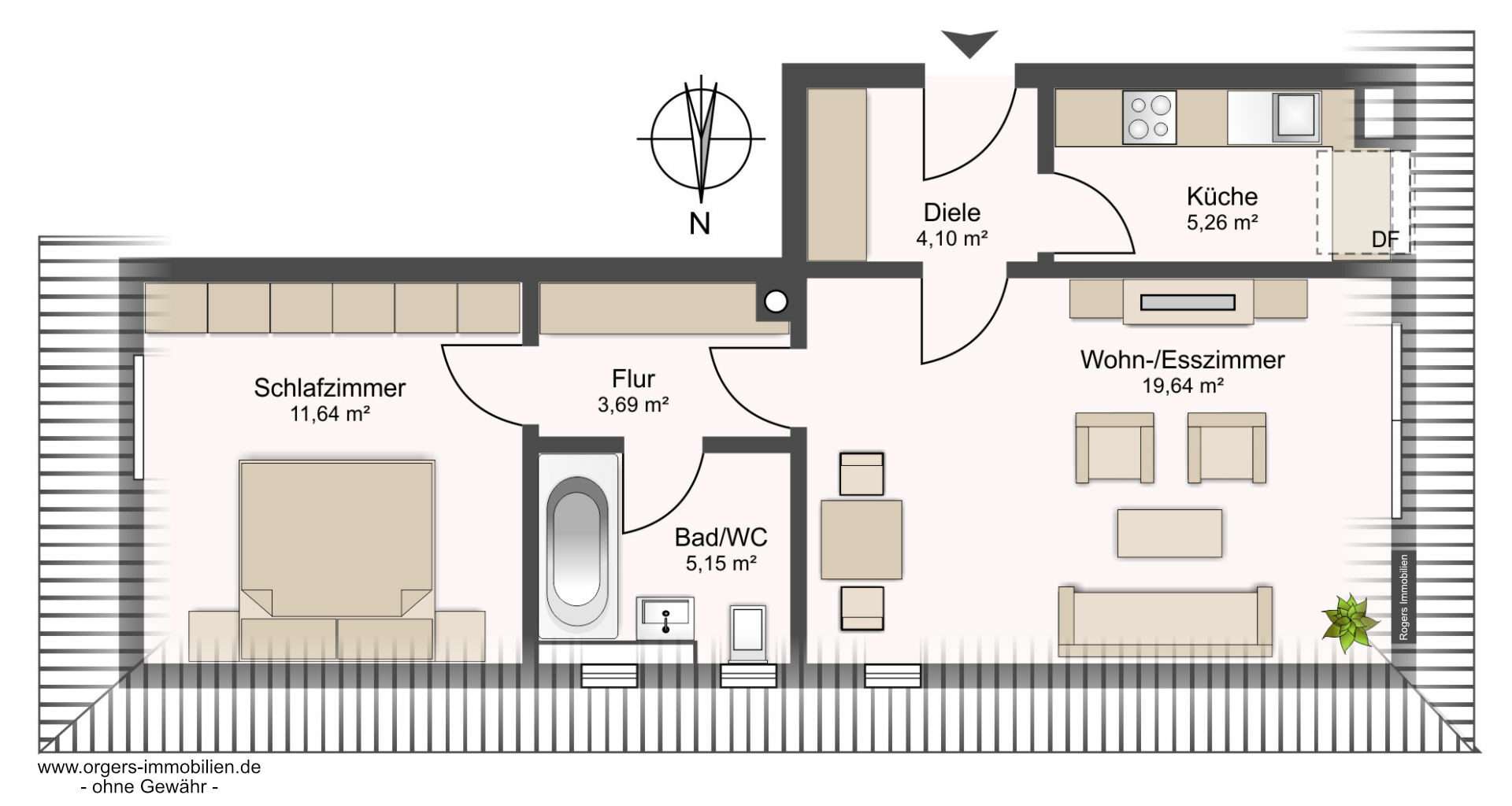 Der Grundriss der Wohnung wurde sorgfältig gestaltet und überzeugt durch seine vielseitigen Nutzungsmöglichkeiten. Mit einer Gesamtwohnfläche von ca. 49,48 m² bietet die Wohnung ausreichend Platz, um sie individuell nach Ihren Wünschen einzurichten.