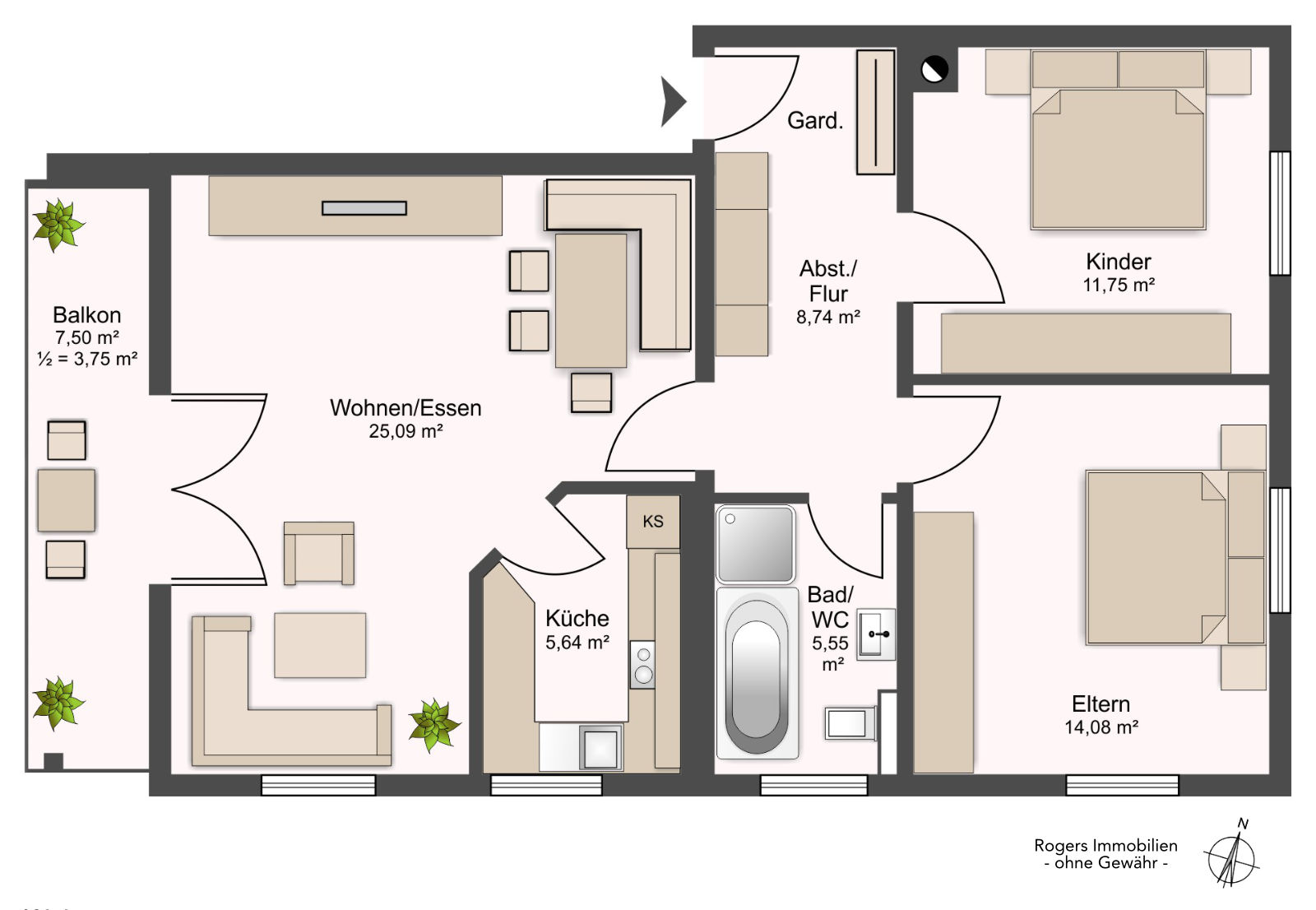 Wohnflächeca. 74,51 m²