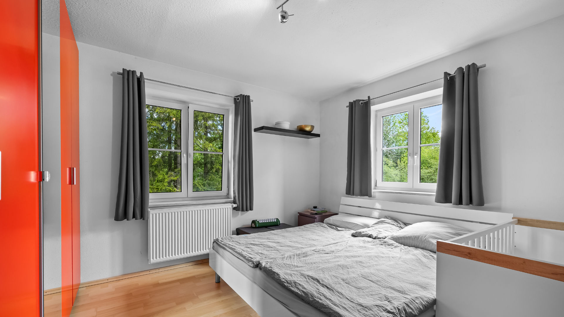 - Schlafzimmer: Das Schlafzimmer liegt zur Nord- und Ostseite, bietet Ruhe und ist ideal zum Entspannen.