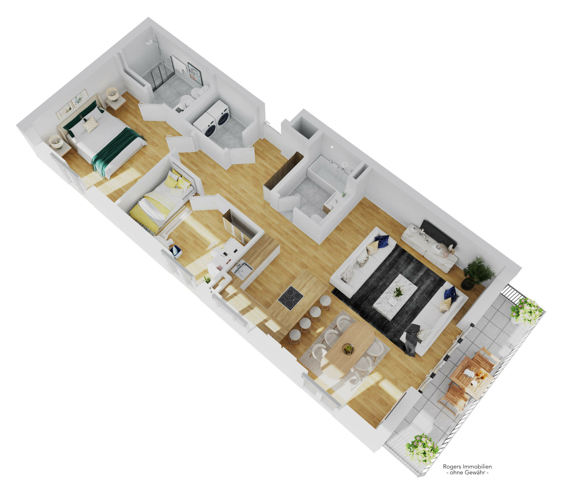 - Ein eigener Wirtschaftsraum mit Platz für Waschmaschine und Trockner ergänzt den Wohnkomfort.
