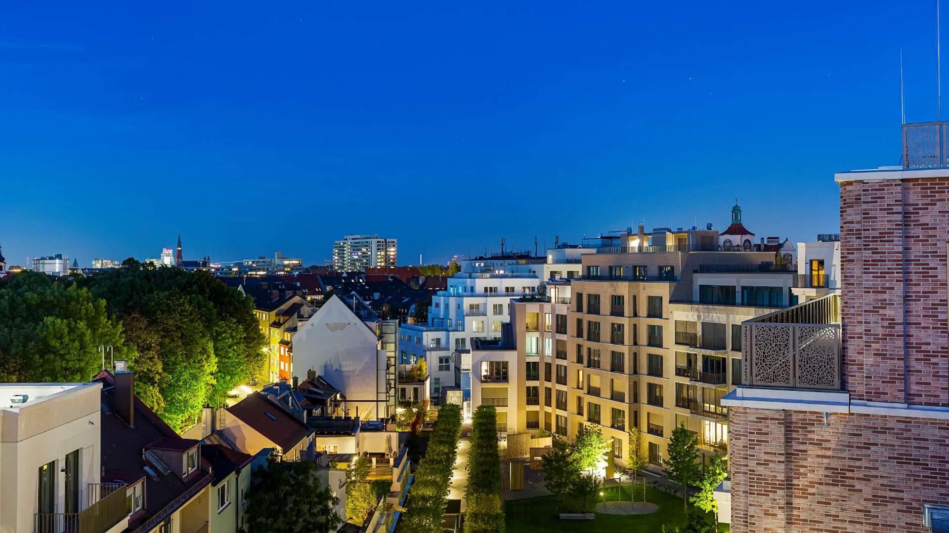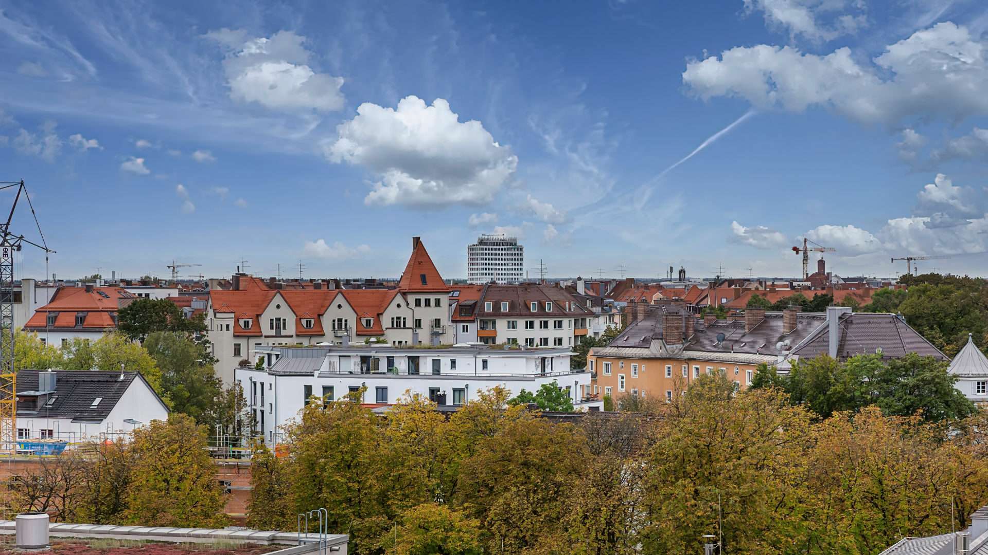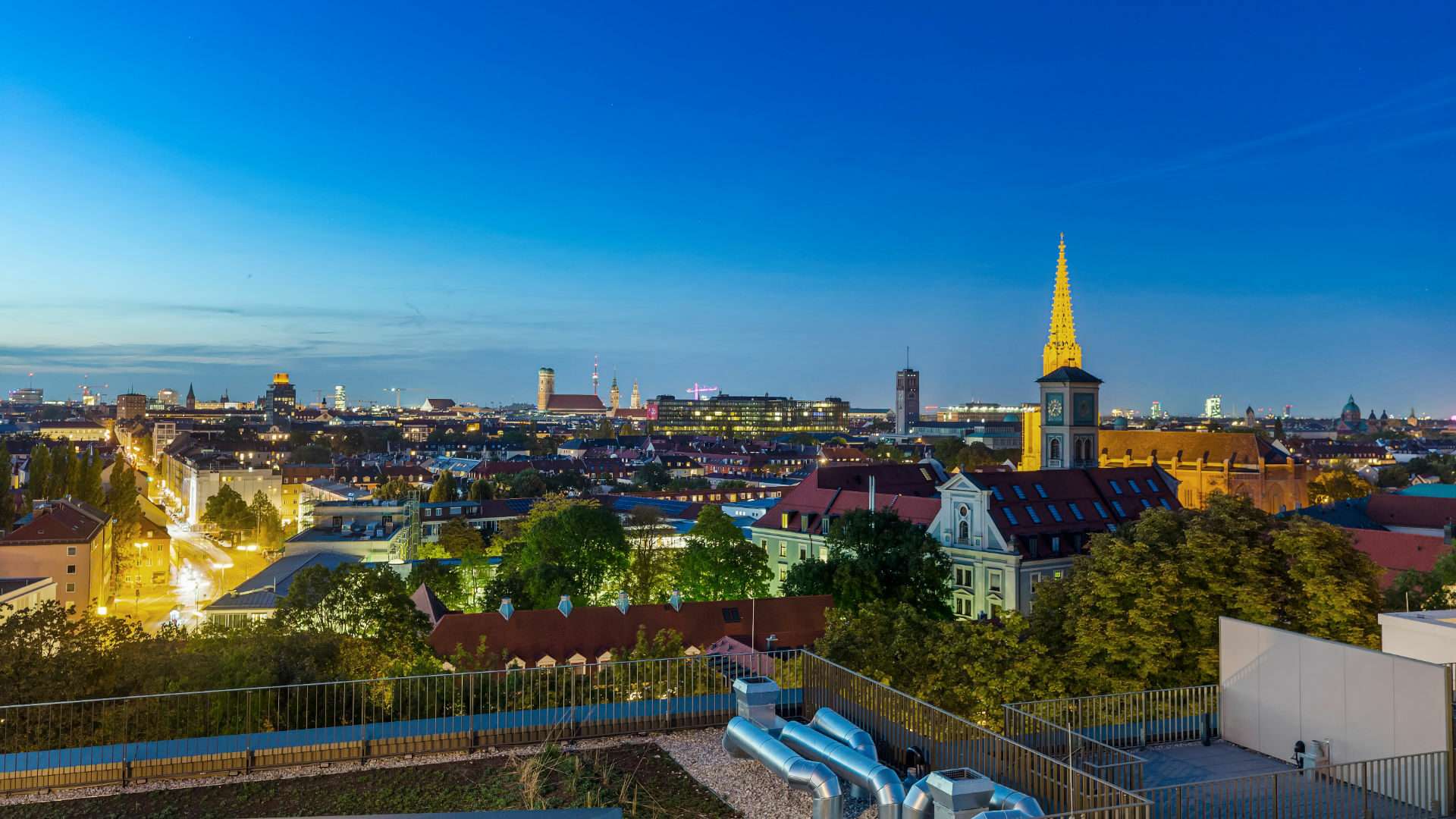 - Traumhafte Dachterrasse zur gemeinschaftlichen Nutzung mit einem atemberaubenden Blick über die Stadt München bis zum Alpenpanorama.