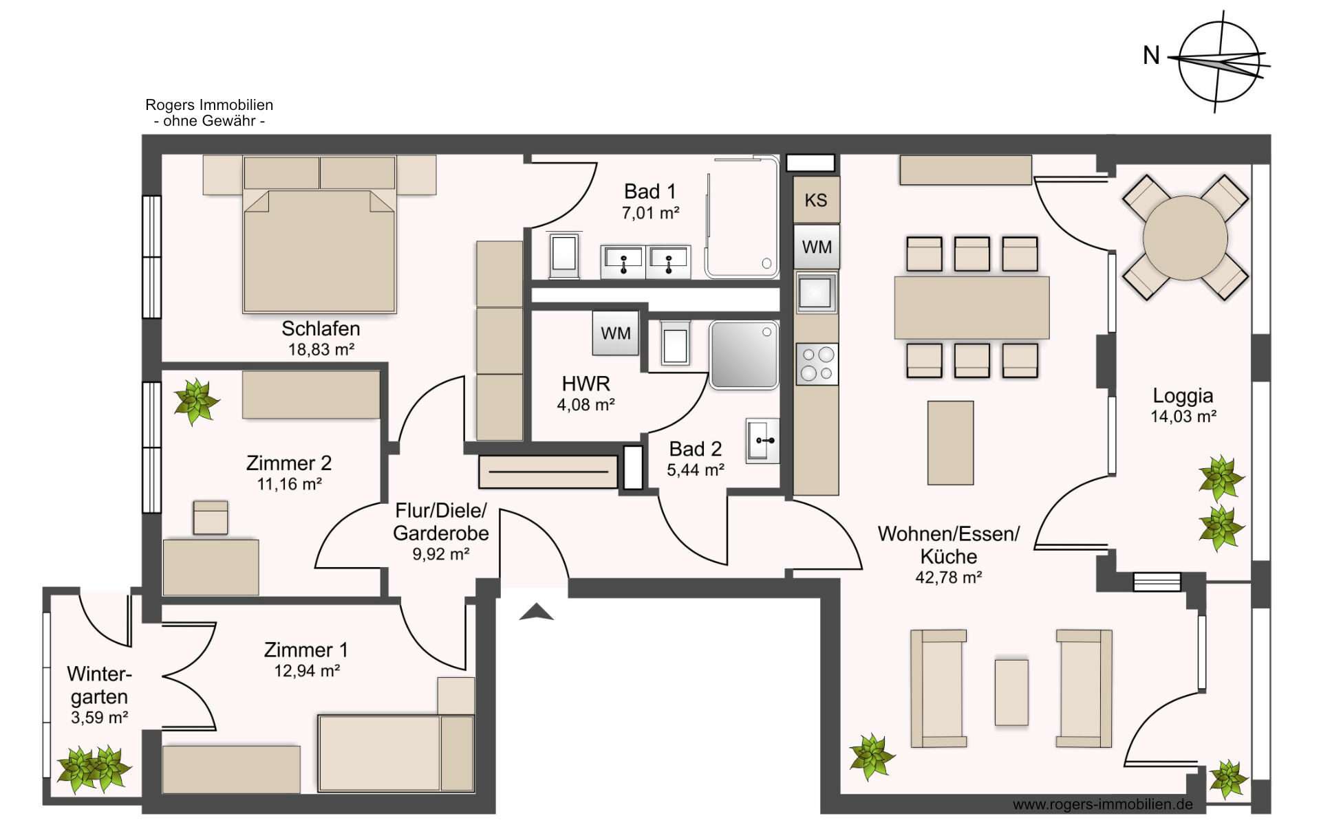 - Abgerundet wird das Angebot dieser herausragenden Wohnung durch einen praktischen Wirtschaftsraum, der Ihnen Platz für eine Waschmaschine und einen Trockner bietet. So steht Ihnen auch in puncto Hauswirtschaft ein optimales Umfeld zur Verfügung.