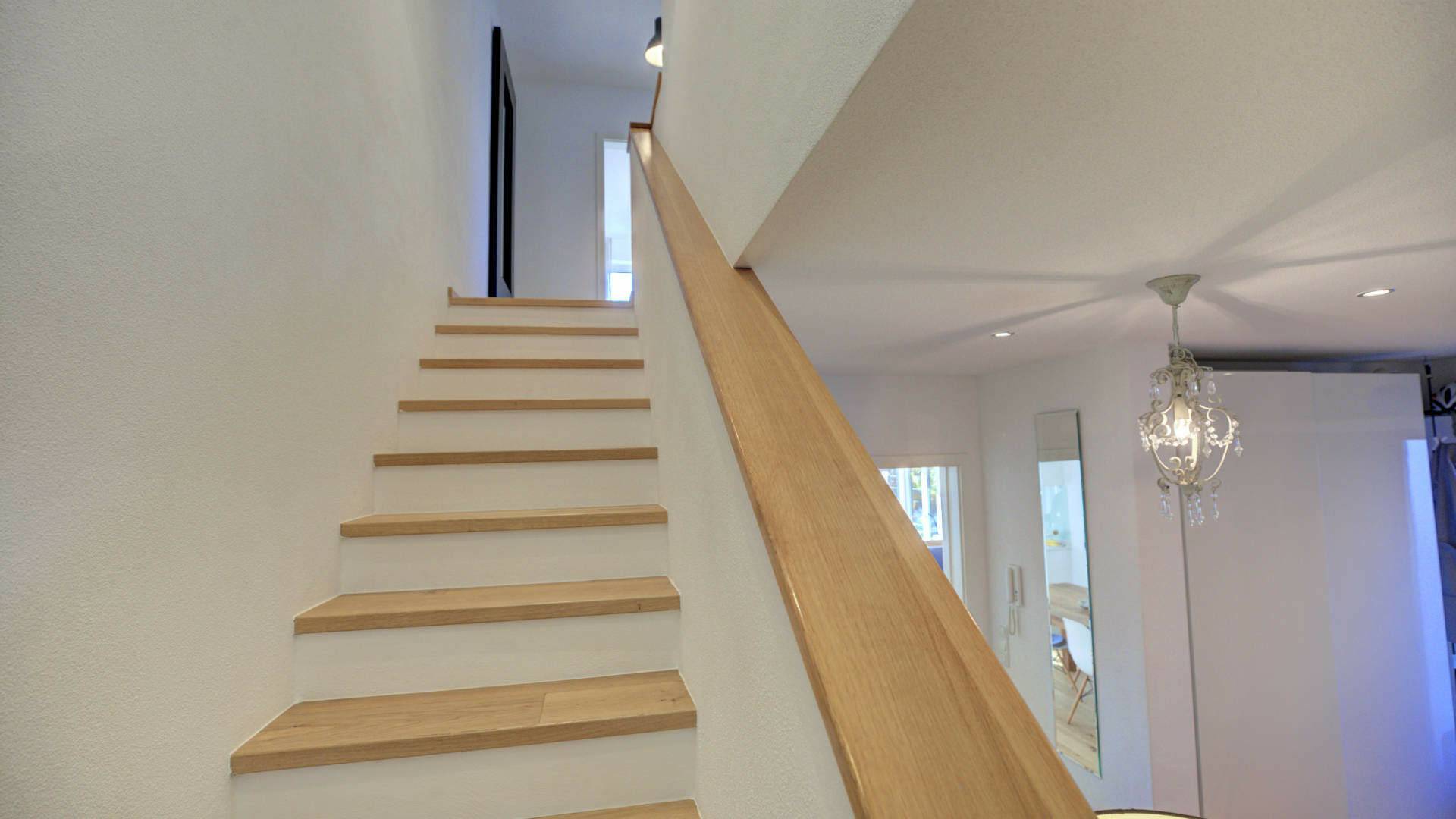 - Hochwertige gemauerte Treppe mit Trittstufen aus Eiche
