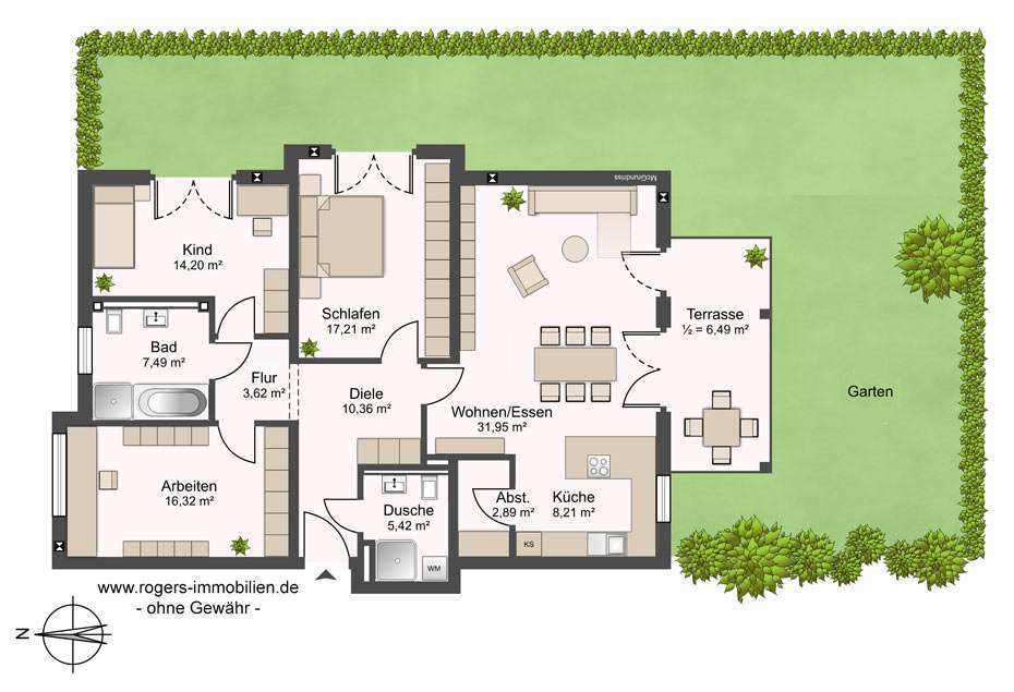 - Schöne, sonnige Südterrasse mit angrenzendem Garten: Ihr persönliches Refugium im Freien.