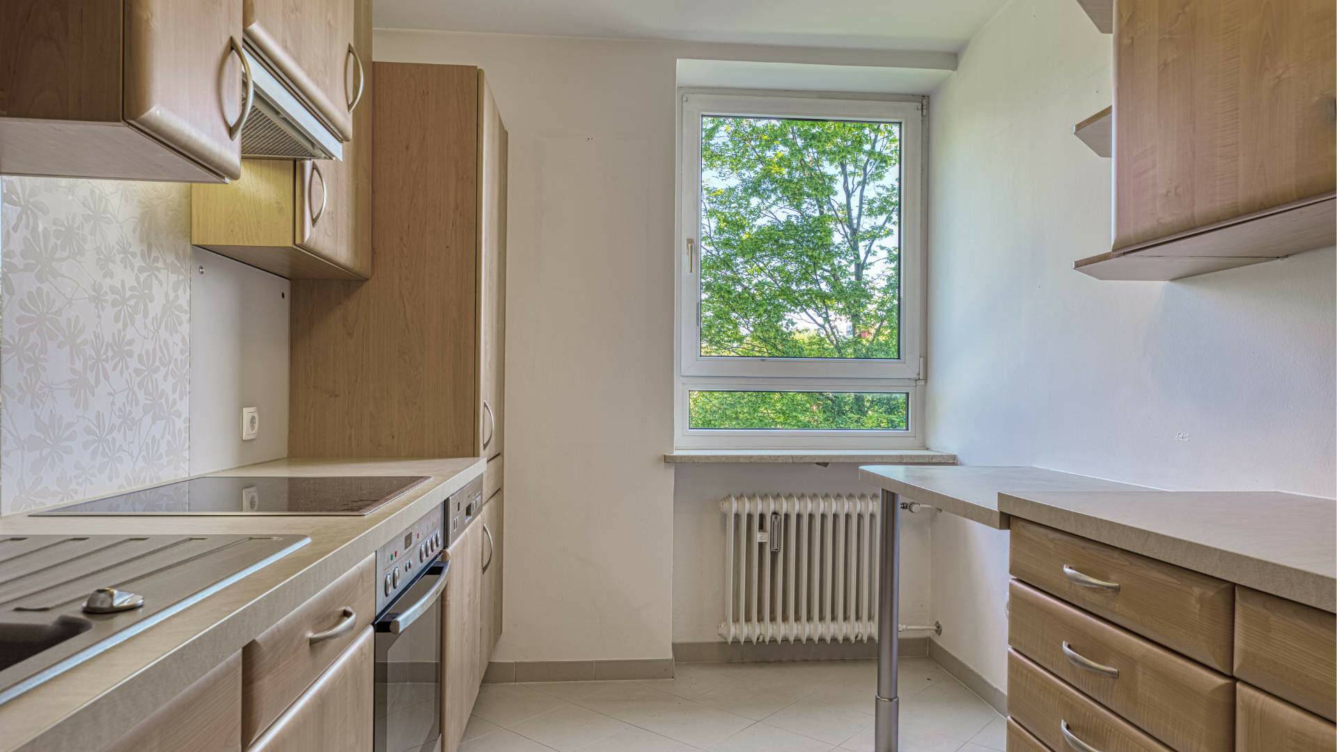 • Die Küche verfügt über eine Einbauküche mit Cerankochfeld und Backofen, Kühlschrank, Gefrierschrank und Geschirrspülmaschine. Die Küche wurde im Jahr 2012 neu eingebaut.