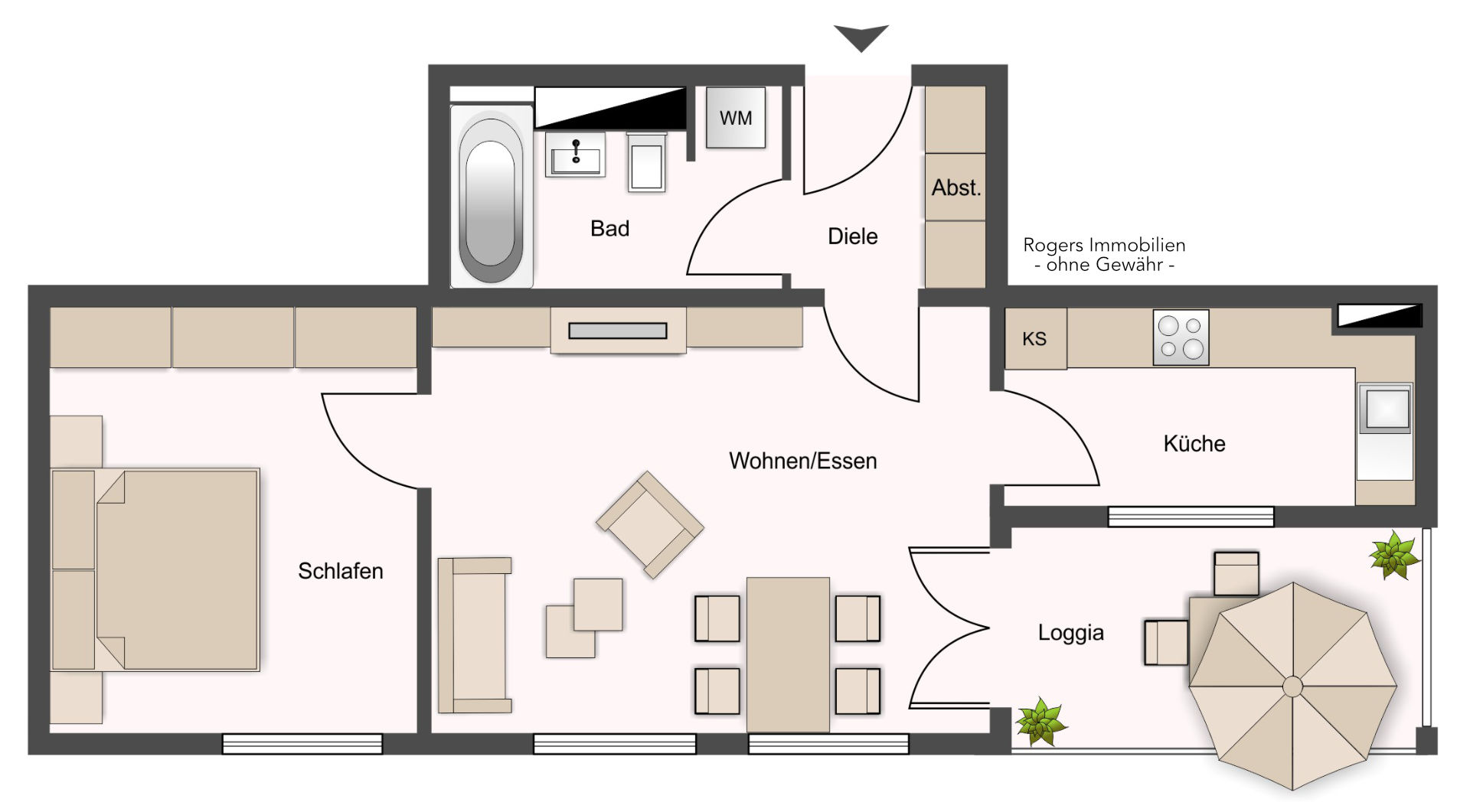 Der Grundriss ist mit Sinn für Detail durchdacht und überzeugt durch Vielseitigkeit. Die Räume sind liebevoll ausgestattet und haben einen unaufdringlichen, charmanten Stil. Mit insgesamt ca. 51,54 m² Wohnfläche haben Sie gute Gestaltungsmöglichkeiten, die Nutzfläche liegt insgesamt bei ca. 54,78 m².