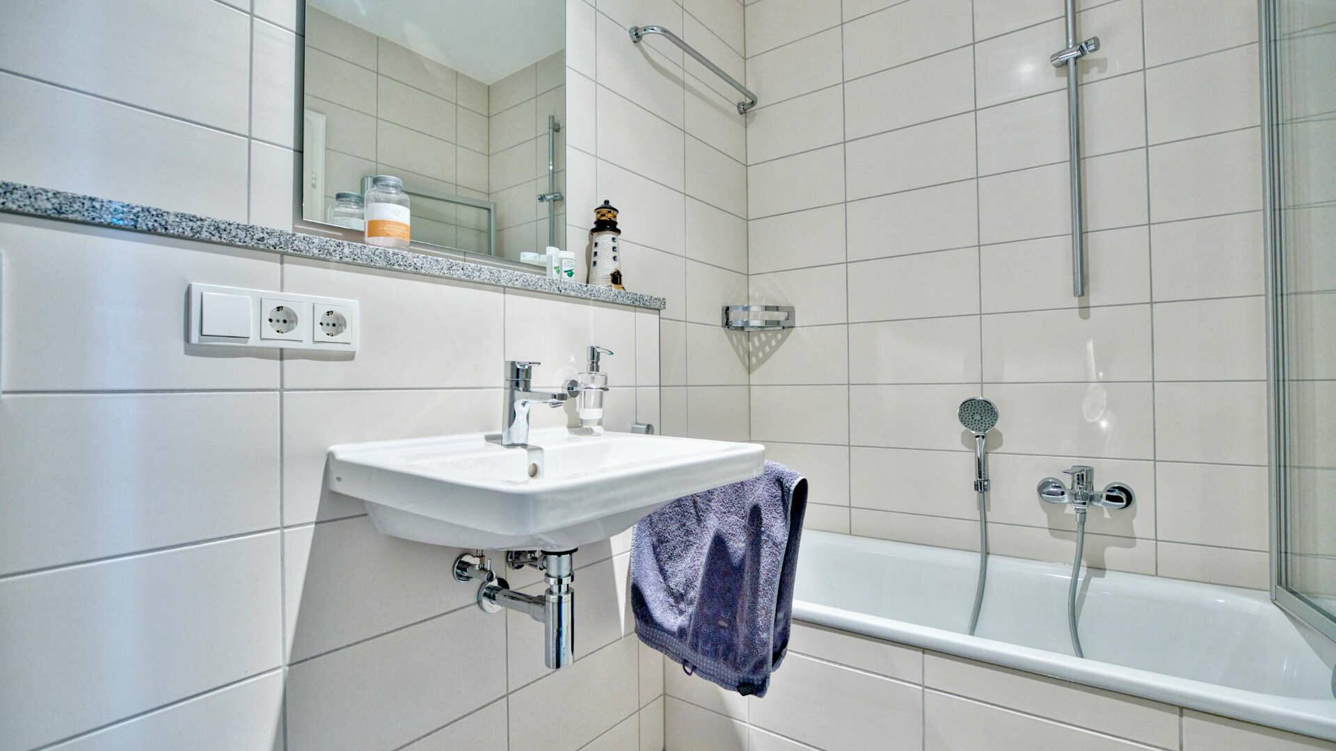- Zwei hell geflieste Bäder und ein Gäste-WC.