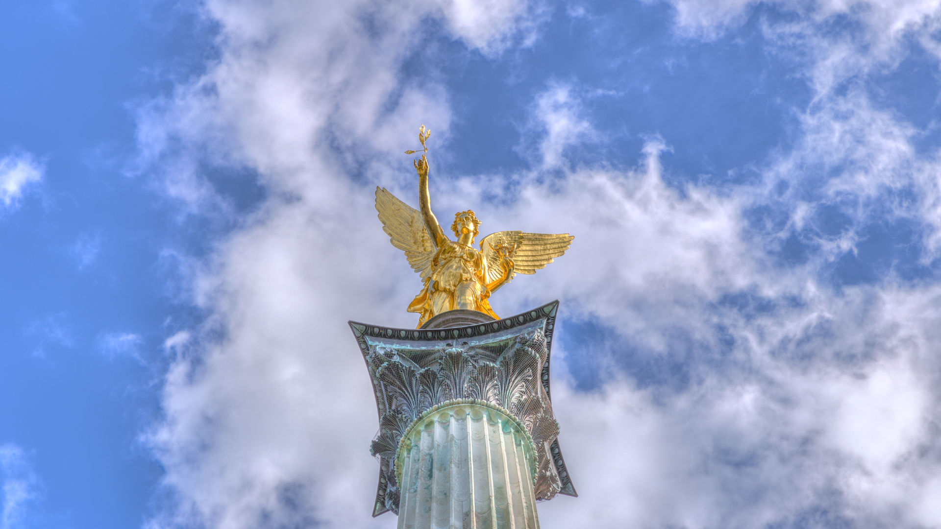 Der Friedensengel, ein prägendes Wahrzeichen Münchens im Stadtteil Bogenhausen, strahlt über die Stadt.